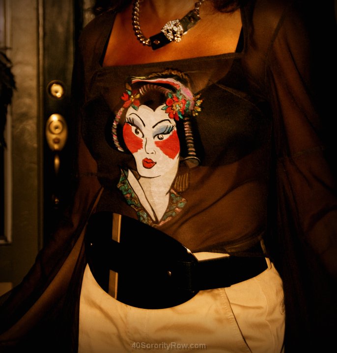 High Drama. Sometimes the best way to bring the sexy is to up and bring the sexy. Shower his eyes with the visual feast his fantasies are made of. Sheer Kimono Top: LSO Designs; Bralette: Calvin Klein; Necklace: Chunky Lion ID; Pants: Dolce and Gabbana; Shoes: Rochas